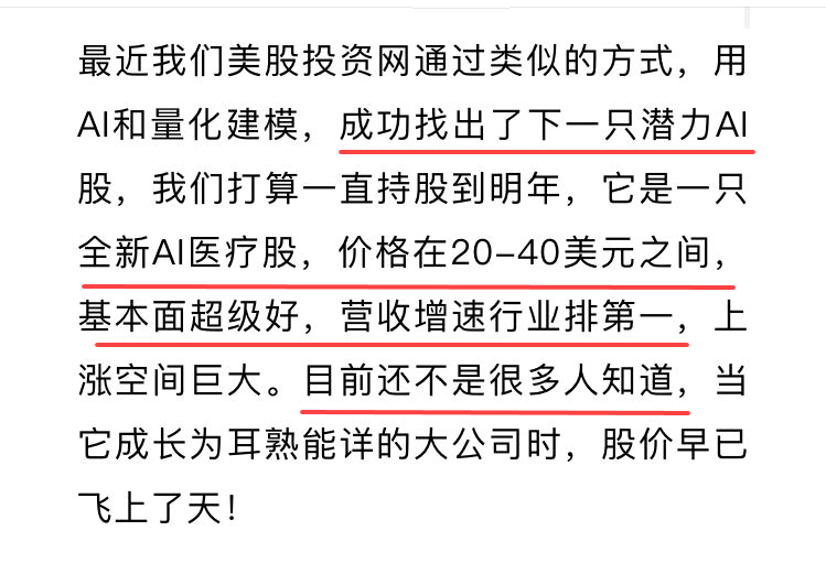 我们美股投资网通过大数据量化建模,成功找出了下一只AI相关医疗股,很久没有发现这么好的基本面的公司了,我们打算一直持股到明年,它价格不高在20-40美元之间,财报靓丽,营收增速行业排第一,上涨空间大。