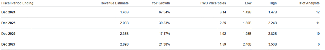 从估值来看,HIMS的前瞻市销率(P/S)逐年下降。这表明,尽管收入持续增长,市场对HIMS的估值正在趋于合理化,为未来的股价提供了更大的上涨空间。