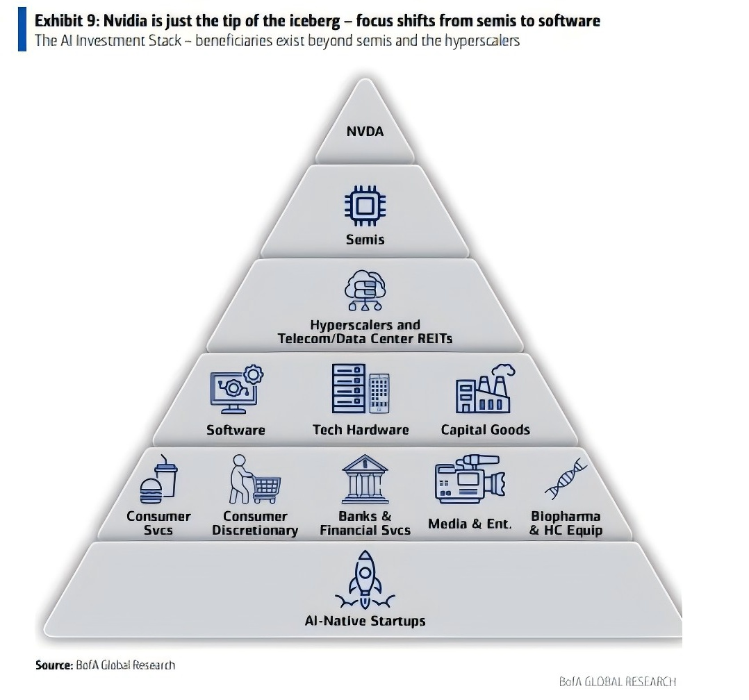 在英伟达涨不动的大环境下,并不意味着AI热潮消退,而是市场焦点正从硬件驱动的第一阶段,转向AI应用价值兑现的第二阶段。在这个阶段的受益者股价都涨上了天,比如 PLTR 和 APP,要找出下一只AI潜力股极其困难。