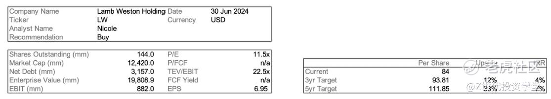 EPS: Furthermore, LW’s EPS of $1.20 highlights its ability to generate substantial earnings per share, translating into relatively more tangible returns for shareholders. This stronger earnings performance, coupled with the company's solid fundamentals and strategic positioning in the frozen food industry, bodes well for its growth trajectory and long-term value creation.