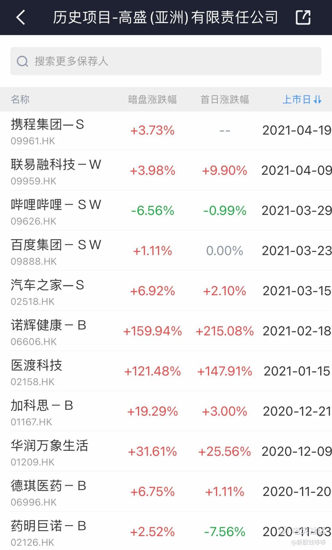 受益于近2年的牛市,高盛的历史保荐记录看起来不错。老人们都知道一旦破发,高盛不会卖力护盘。