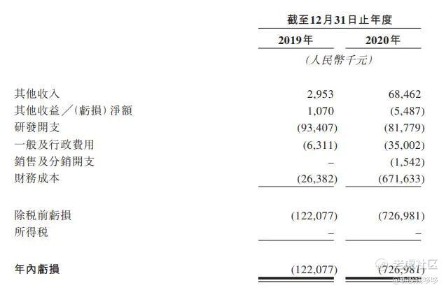 2019年亏损1.22亿,2020年亏损7.27亿。亏损主要源于研发开支。