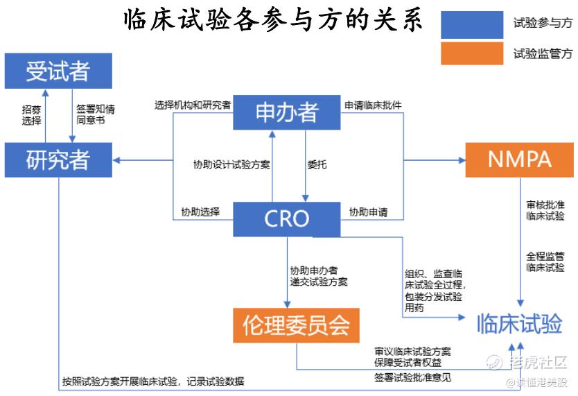 CRO,就是指通过合同形式为医药企业和医药科研机构在研发过程中提供专业外包服务的组织或机构。这类似于半导体产业链里的设计环节,半导体设计公司设计好芯片图表,然后交给晶圆制造公司来代工。