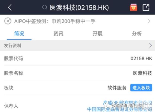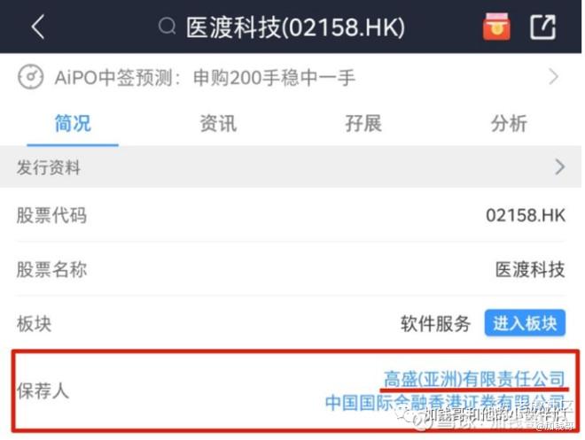 一般在招股书的首页,都能找到上市公司的保荐人,当然也可以在第三方软件上查到。比如“医渡科技”在香港上市时的保荐人有2个,分别是高盛和中金公司。