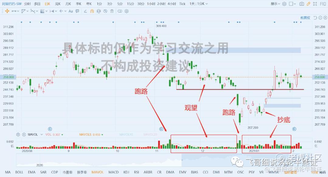 最后我再以阿里巴巴的成交量来简单说一下如何解读。