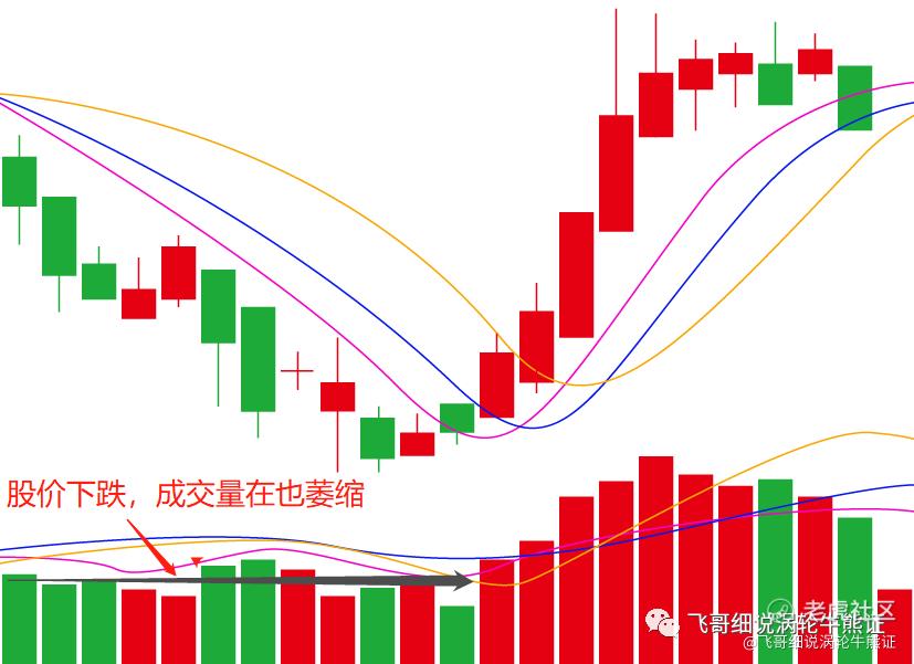 我之前在涡轮群里曾说过,股价要放量才能上涨,但无量可以下跌,那么在这里我解释一下何为无量下跌(天价天量和地价地量不在讨论范围),无量下跌是基于没有放大成交量下跌的前提,成交量基于平均水平的幅度,而不是连续数天低于5日均量的缩量。