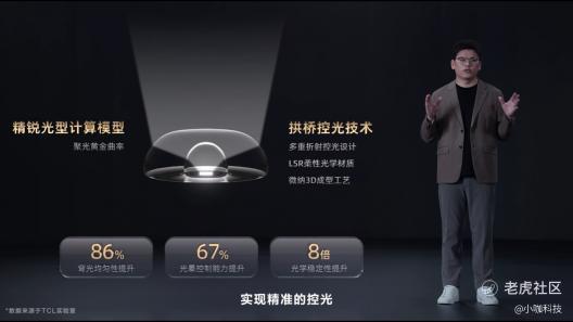 在发布会上,TCL凭借其在Mini LED领域的深厚积累,实现了从背光到成像的完整链路系统级技术突破,包括发光芯片、透镜技术、OD设计、控光算法和屏幕等多个方面。基于此,TCL研发出了当前Mini LED领域中最强的控光系统——万象光晕控制技术。采用这一技术的万象分区,控光效果远超普通分区,为用户带来了极致的Mini LED画质体验。