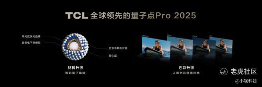 在色彩和亮度方面,TCL凭借创新升级的量子点Pro 2025和绚彩XDR技术,再次实现了质的飞跃。量子点Pro 2025采用了绚彩量子晶体和多层共挤技术,大幅提升了发光效率,使TCL电视具备了行业超高的色域值,能够显示10.7亿级色彩,全屏色纯度提升95%,色准ΔE<0.99。同时,由于量子点的无机材料特性,其稳定的使用寿命达到10万小时不褪色,真正实现了10亿原色屏,10年好色彩。