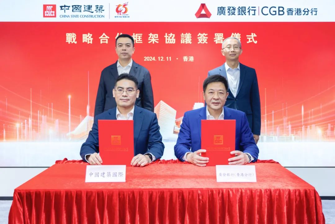 近日,为促进业务共同发展,建立长期、稳定、互惠、互利的全面合作关系,中国建筑国际集团与广发银行香港分行签署战略合作框架协议。中国建筑国际执行董事兼首席执行官王晓光、财务总监赵绍然,广发银行行长王凯,广发银行香港分行行长胡敏出席签约仪式。