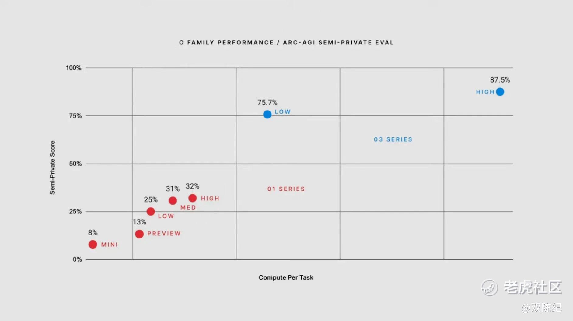 为什么这次会有危机感?因为O3模型在ARC-AGI基准上87.5%的分数,超过人类水平门槛85%。