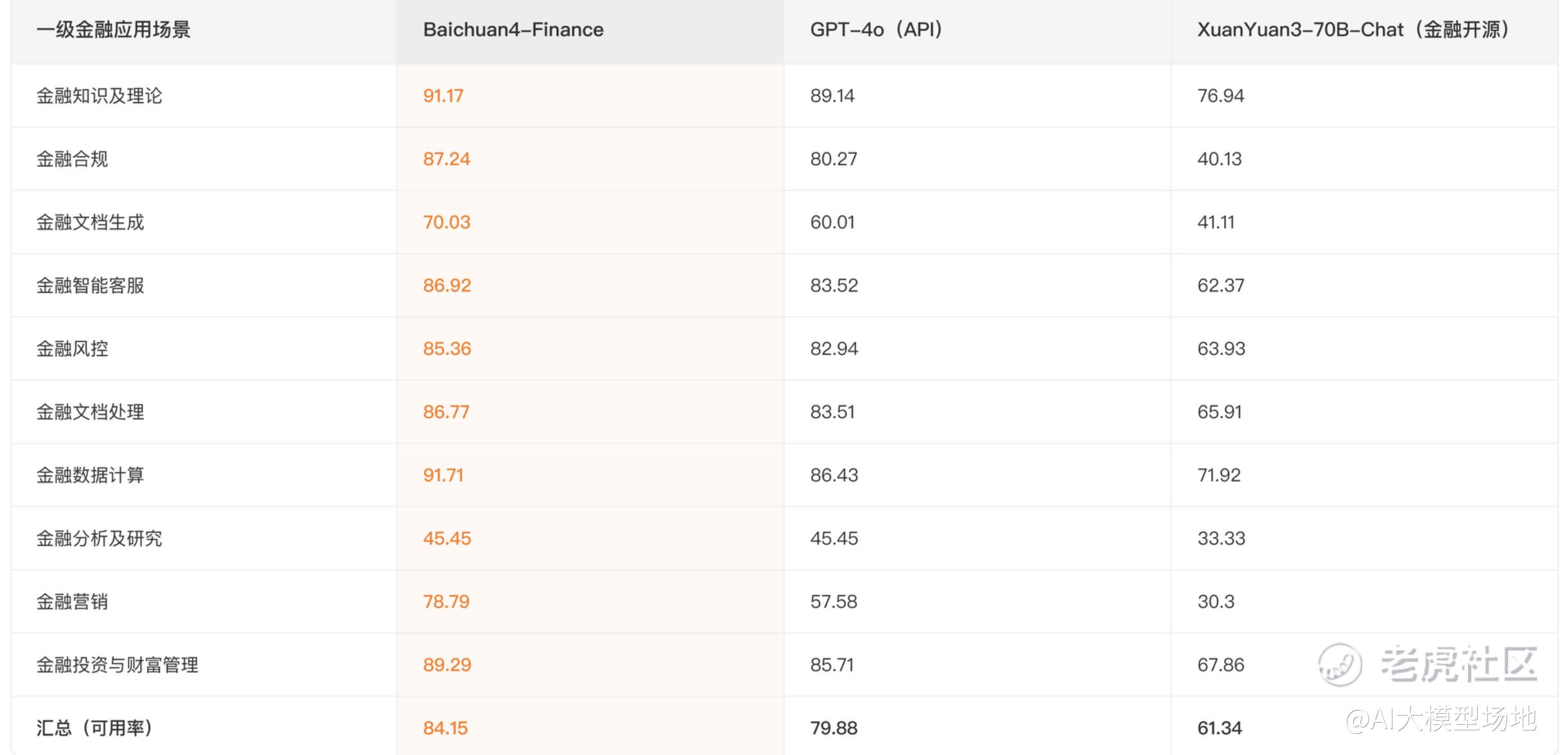 12月23日,百川智能发布全链路领域增强大模型Baichuan4-Finance。在高质量金融数据的基础上,通过行业首创的领域自约束训练方案,Baichuan4-Finance实现了金融能力和通用能力同步提升的效果,极大提高了金融场景的整体可用性。其金融专业能力和场景应用能力大幅领先GPT-4o,在中国人民大学财政金融学院新近发布的评测体系FLAME以及国内主流开源金融评测基准FinancelQ上均登上榜首。