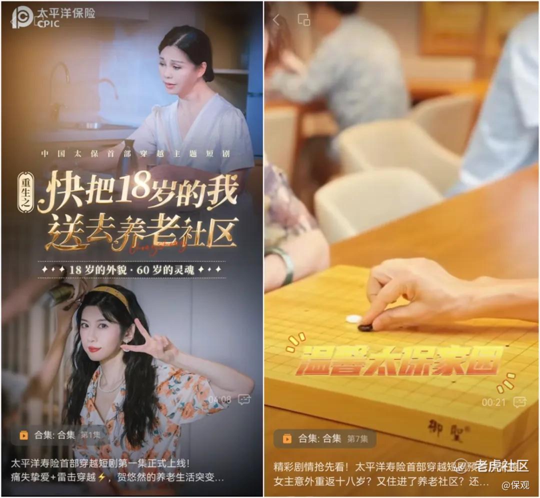 再如,今年9月份,太平洋寿险推出了《重生之快把18岁的我送去养老社区》,以中老年穿越为主要题材,连接年轻和中老年两大短视频受众群体,植入太保家园养老社区的场景。
