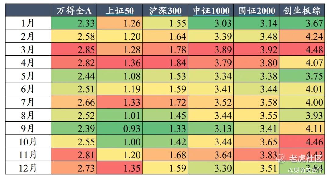 可以看到,过去10年,全部A股1月的日换手率均值为2.33%,明显低于其它月份。
