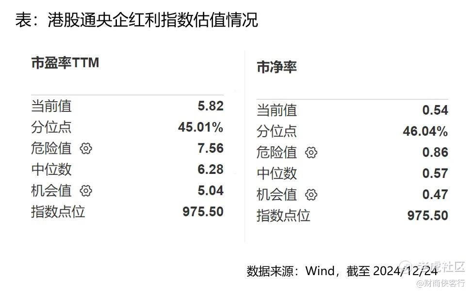 这点从港股通央企红利指数的估值上就可以体现出来,市盈率5.82倍,市净率0.54倍;相比万得全A的18.81倍市盈率和1.6倍市净率,明显低估。