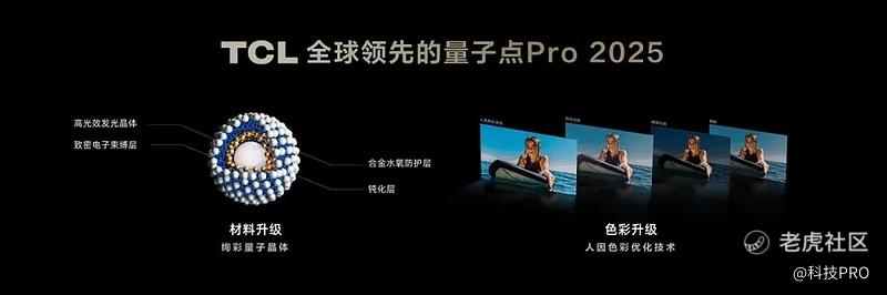作为去年斩获诺贝尔奖的技术,量子点(简称QD)能够精确地控制色彩的输出,发出更纯净、更加饱满的红、绿、蓝光谱。TCL很早就看到了量子点技术在显示领域的巨大潜力,并一直领跑行业,最新推出的量子点Pro 2025通过升级更先进的绚彩量子晶体,大幅提高了量子点的发光效率和稳定性,在做到超高色域的同时,将寿命从6万小时延长至10万小时。