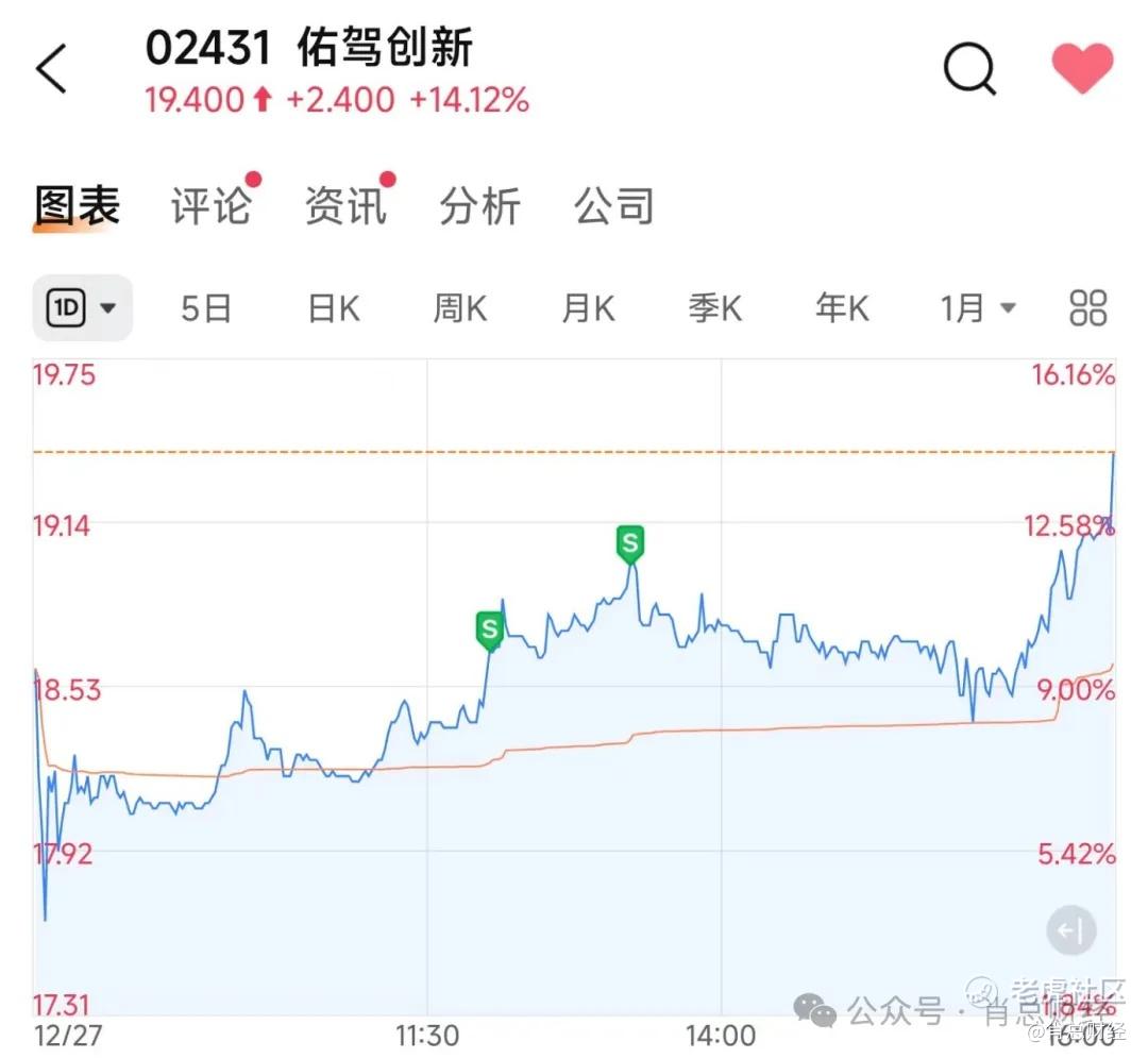 佑驾创新今天尾盘拉升,收涨14.12%。