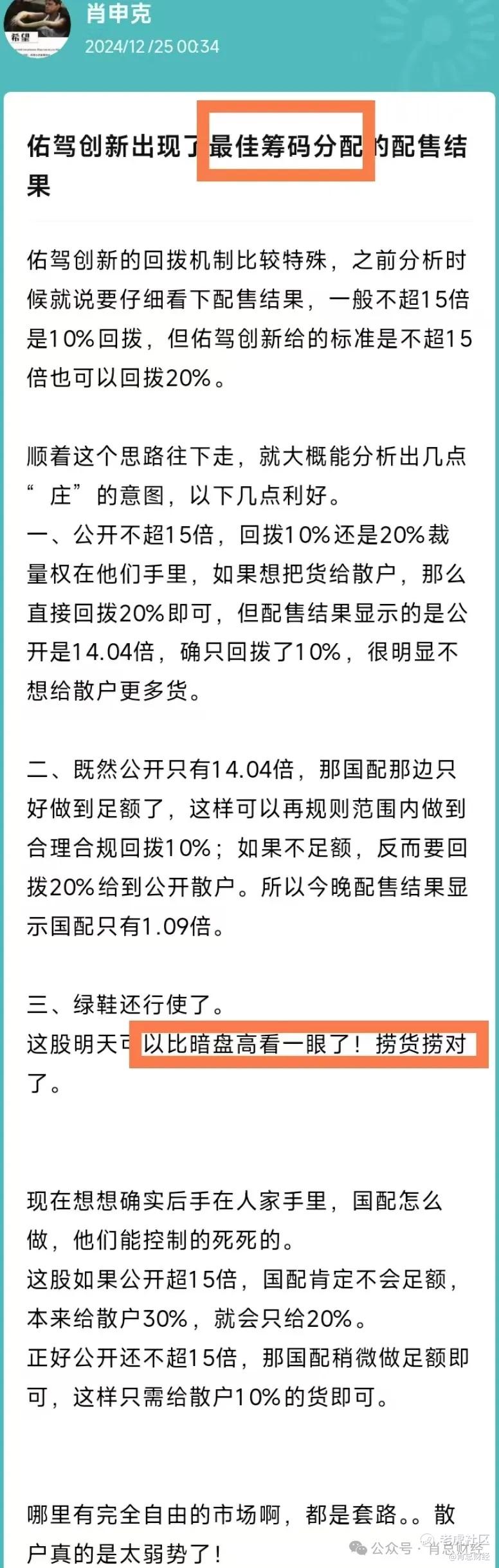 这股公开最终14.04倍,没超15倍也不用做成套路回拨,给散户10%的货已经是极限了。
