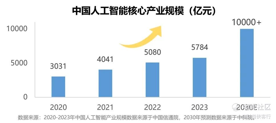 根据中科院的预测,2030年我国人工智能核心产业规模将超过1万亿元。