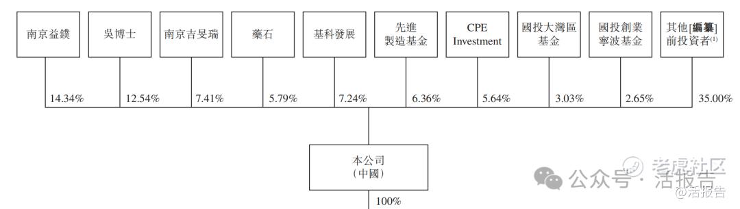 药石持股5.79%;Morningside Venture通过基科发展持股7.24%;国投招商通过先进制造基金持股6.36%;CPE Investment 持股5.64%;国投创业通过国投大湾区基金、国投创业宁波基金分别持股3.03%、2.65%;其他前投资者持股35%。