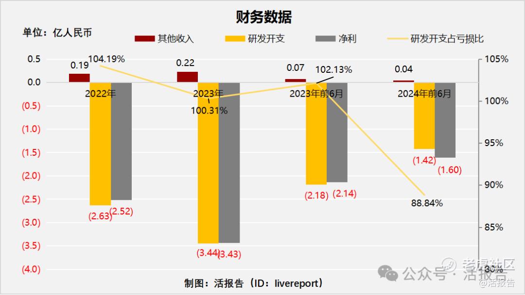 研发占亏损比分别约为104.19%、100.31%、102.13%及88.84%。