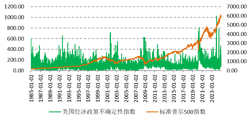 图:美国经济政策不确定性指数和标普500指数表现
