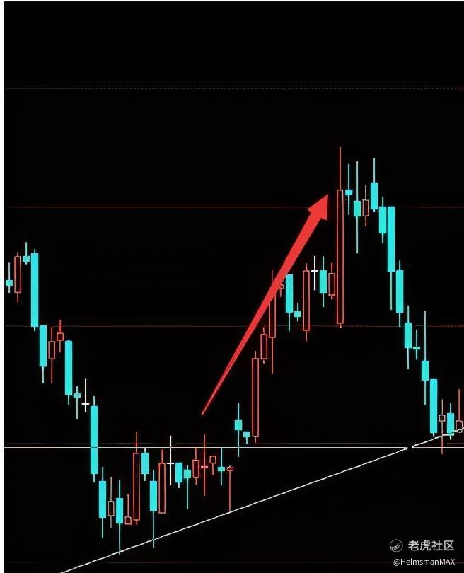 如下图所示。价格在上涨的过程中走出了一个旗形形态,当价格以一根大阳线拉升出旗形区域时,短线交易者可以入场做多,追逐后面的涨幅。