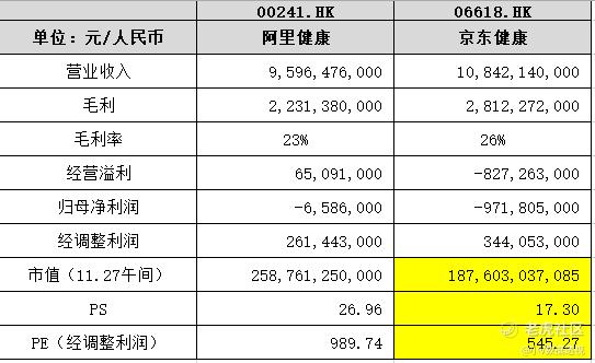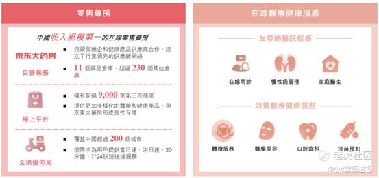 毫无疑问,京东健康对标的锚就是$阿里健康(00241)$ ,两者业务很类似,在线医药销售占营收85%以上