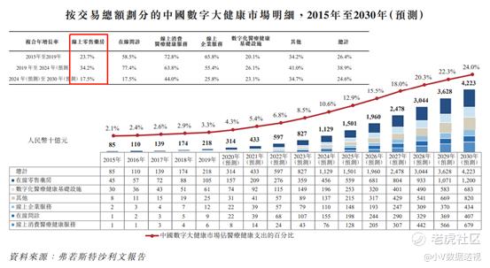 目前,无论是京东健康还是阿里健康,营收的大头都是来自线上药品销售,这条赛道过去5年的年均复合增长率是23.7%,预计未来5年的年均复合增长率是34.2%。赛道还是不错的,而且赛道上主要就这两个玩家,他们两加起来的市场占有率高达57%