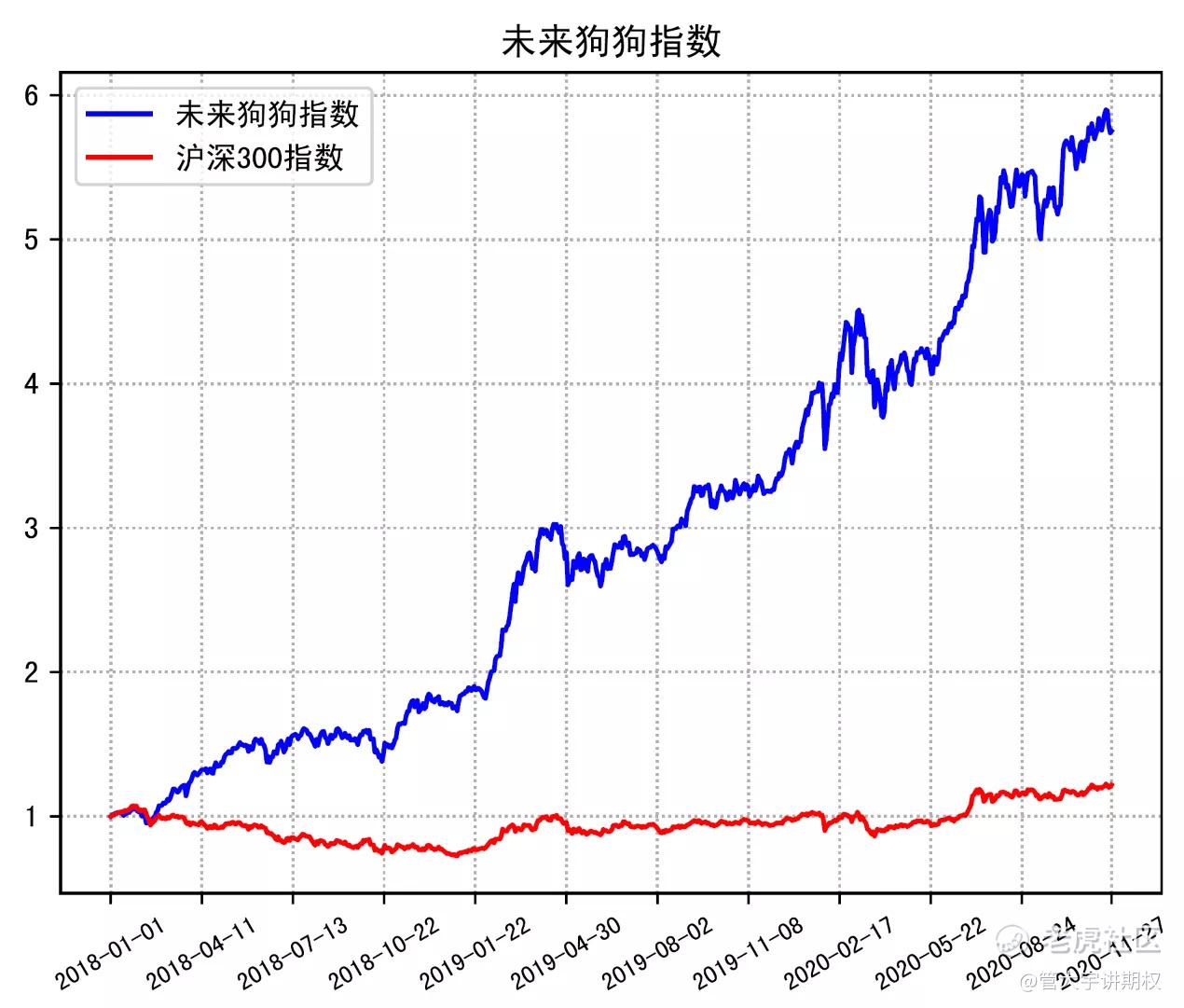 2018年以来,未来狗狗指数的回报为475%,沪深300指数回报为23.6%。