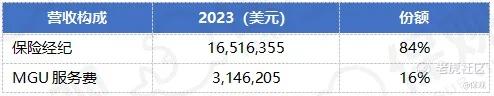 致保科技的收入包括保险经纪和MGU服务费。截至2023年6月30日的财年,保险经纪收入为1,651.64万美元,MGU服务费为314.62万美元,占比分别为84%和16%。