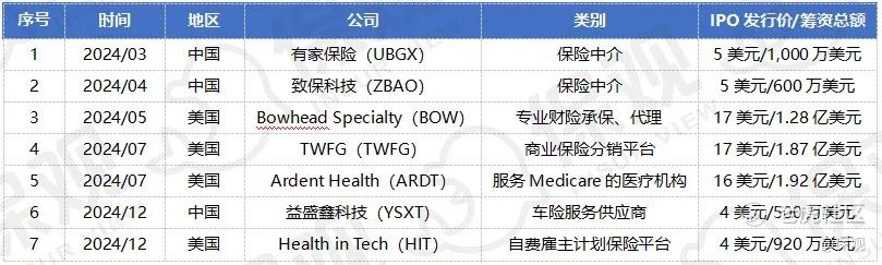 同时,美国也有几家保险类公司于2024年登陆资本市场,包括专业财险公司Bowhead Specialty、保险经纪公司TWFG、针对Medicare产品的医疗服务商Ardent Health以及为自费雇主计划服务的平台Health in Tech。