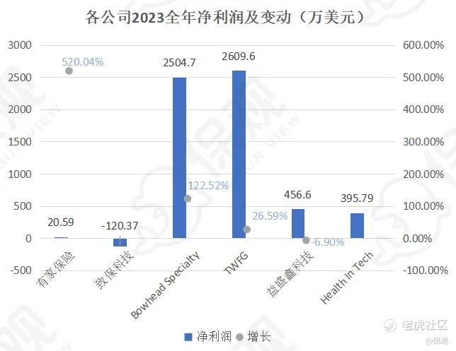其余公司中,TWFG和Bowhead Specialty净利润最高,分别为2,609.6万美元和2,504.7万美元,分别同比增长26.59%和122.52%,规模远远超过了其他公司。