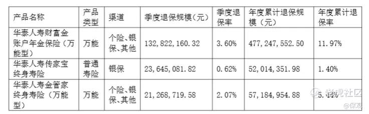 同时截止2024年前三季度,华泰人寿退保金额排名前三的产品分别为财富金账户年金保险(万能型)、金管家终身寿险(万能型)、华泰人寿传家宝终身寿险,退保金额分别达到4.77亿元、0.57亿元、0.52亿元,很显然,今年华泰人寿的退保金额大概率也不会太低。