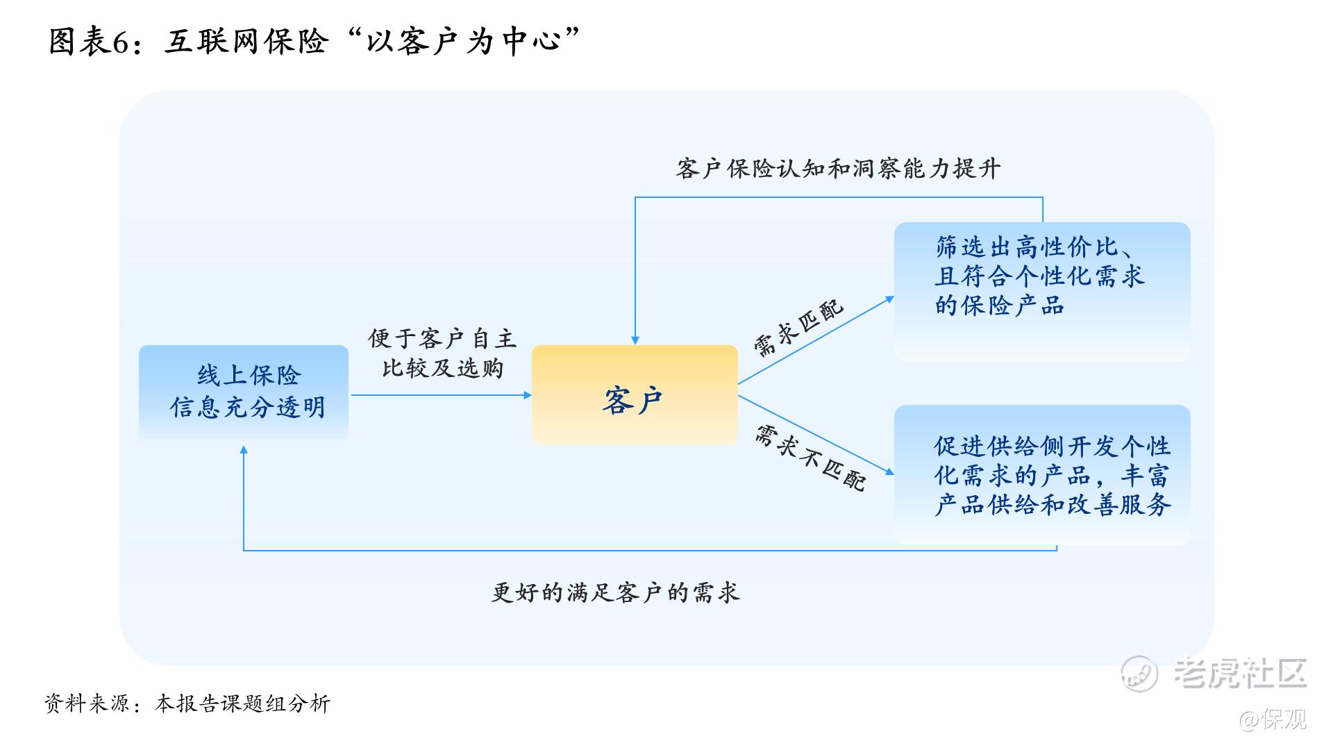 从保险经营的角度出发,互联网保险推动保险机构重塑资源配置模式,将管理资源重心由渠道建设向产品创新、服务建设倾斜。《报告》强调,互联网保险正在推动行业供给侧的转型升级,并从根本上推动行业向“以客户为中心”的模式转变。这种转变不仅显著提升了产品能力、风控及精准定价能力,还有效提高了营销效率和差异化服务水平。