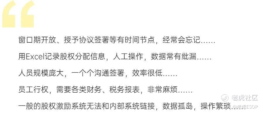 老虎开展一站式ESOP管理服务目的就是为企业提供综合性的解决方案,通过先进的技术和创新的增值服务,帮助大家避开股权激励的那些“坑”并为行业带来变革。