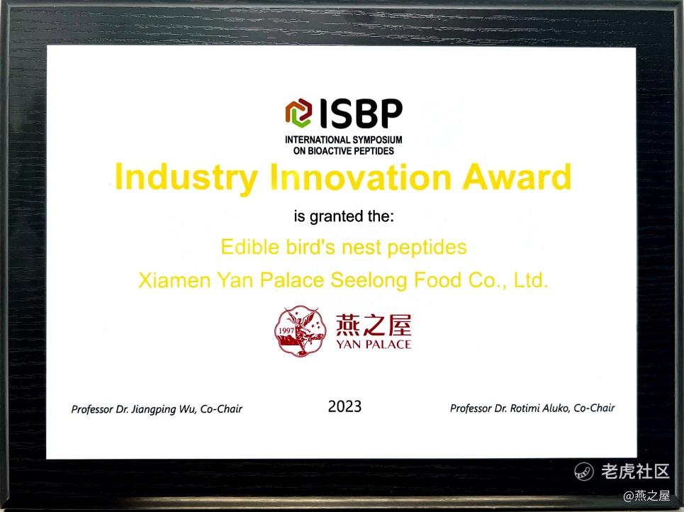 图:燕之屋荣获燕窝肽——行业创新奖(Industry Innovation Award)