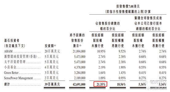 一共吸引了6位基石投资者,一共买走约20%的货