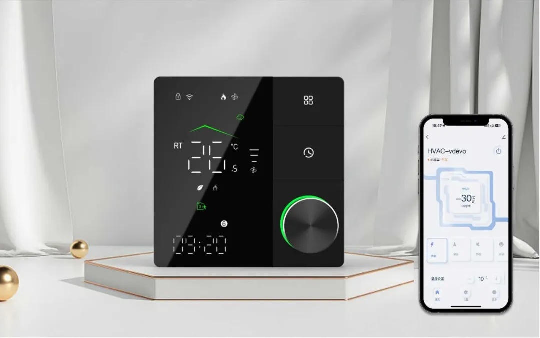 该方案适配RTOS系统,T5系列模组也可适用于线控器类产品的开发,比如空调、热泵、中控等产品的带屏操控面板,涂鸦云开发者平台提供完整的开发工具和UI界面,可以提升智能彩屏产品开发效率,降低硬件成本、开发成本。