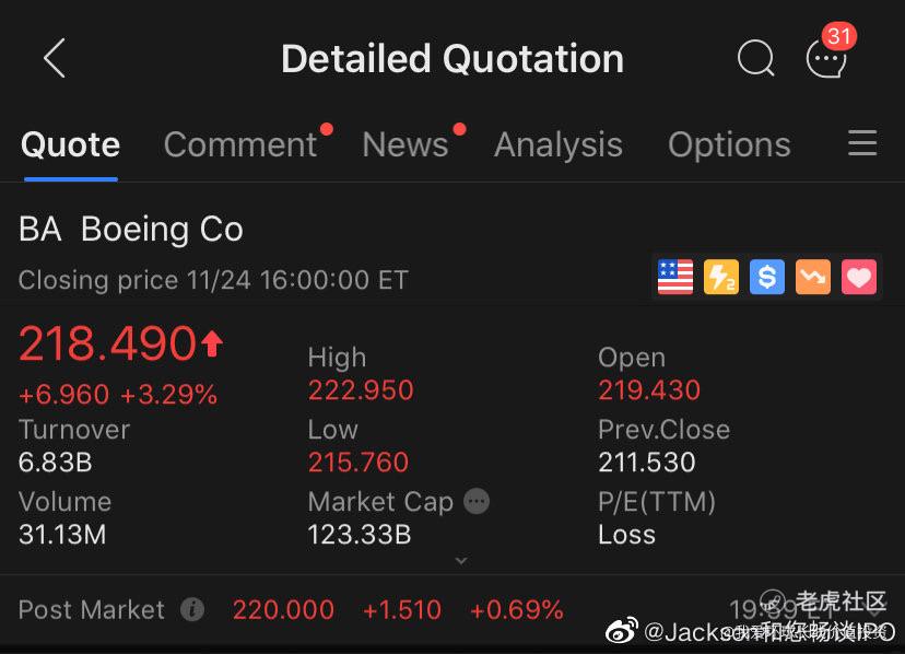 DOW道琼斯指数在今天美股交易日上30000点,而在8个月前仅为20000点(见图1)。核心成分股如Chevron、JPM、GS、BA均大涨(见图2),其中后面3个均为我们Portfolio的投资标的,尤其是BA波音(今天的股价涨势如图3)。