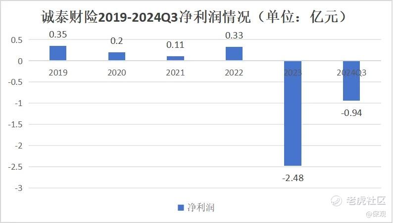 2024年前三季度,诚泰财险继续亏损0.94亿元。“挣得时候挣不多,亏得时候亏很多”,成为了诚泰财险业绩的真实写照。