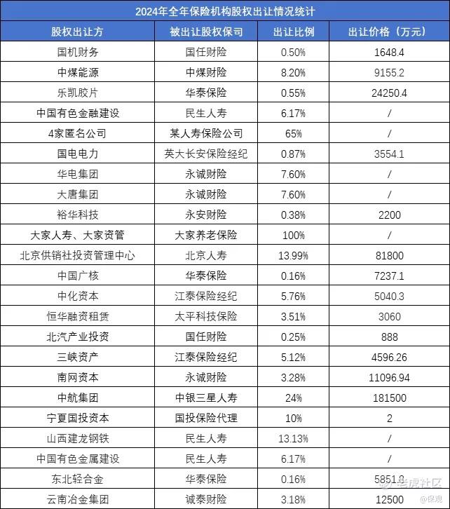 今天我们就来盘点一下2024年全年保险机构股权转让的情况。