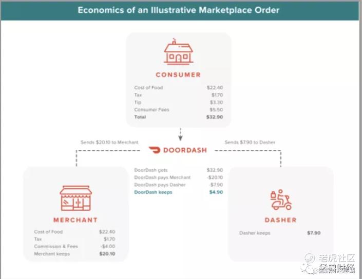 猛兽君找到了一个DoorDash对外展示他们怎么赚钱的图。