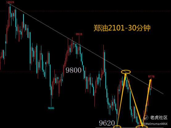 郑油到达昨日跟空,跟多条件,下破承压9610,上破站稳9700,收益空间分别是11-78个点。下个交易日,多单上破企稳9800点位跟进,空单下破承压9620点位跟进。