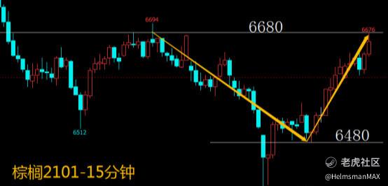 棕榈到达昨日复盘跟空条件,下破承压6510,最低至6394,收益空间116个点。行情在触及今日低位后,迅速反弹,月线,周线,日线皆层现:锤子线一买入信号,空头行情能否借此总结,我们不确定,持续跟踪即可。下个交易日,多单上破企稳6680点位跟进。空单下破承压6480点位跟进即可。