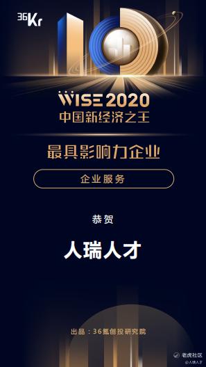 近日,在36氪创投研究院开展的2020年中国新经济之王年度公司评选中,中国最大的灵活用工服务提供商人瑞人才科技控股有限公司(以下简称“人瑞人才”,股份代号:6919.HK)成功入选“2020年新经济之王最具影响力企业”。