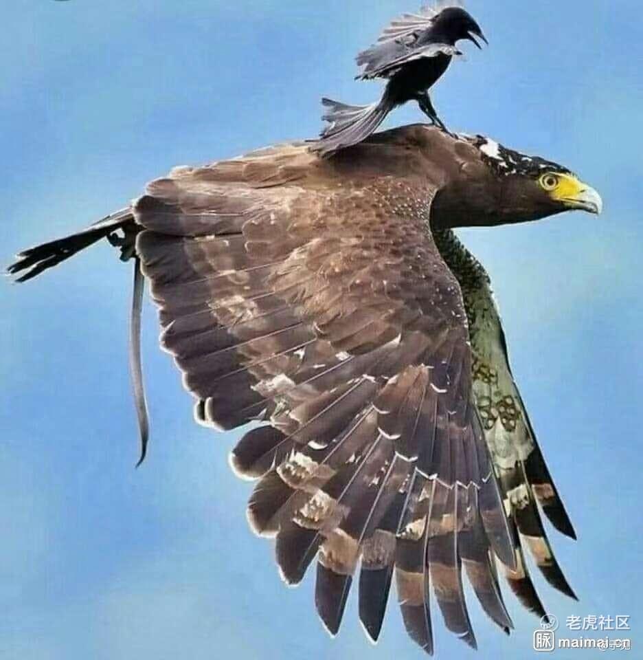 乌鸦坐在老鹰的背上咬他
