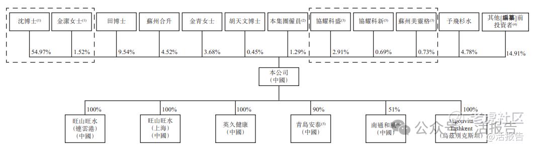 沈博士及金洁女士将被视为公司的控股股东。IPO前,沈博士持股54.97%,金洁女士持股1.52%,田博士持股9.54%,苏州合升持股4.52%,金青女士持股3.68%,胡天文博士持股0.45%。
