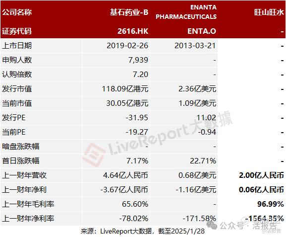 同行业IPO可比公司有:基石药业-B(2616.HK)、Enanta Pharmaceuticals(ENTA.US)