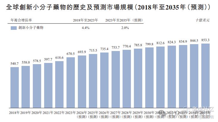全球创新小分子药物市场经历显著增长,由2018年的5,407亿美元增至2023年的6,705亿美元,年复合增长率为4.4%。预计于2035年,该市场将达到8,533亿美元,自2023年至2035年的年复合增长率为2.0%。