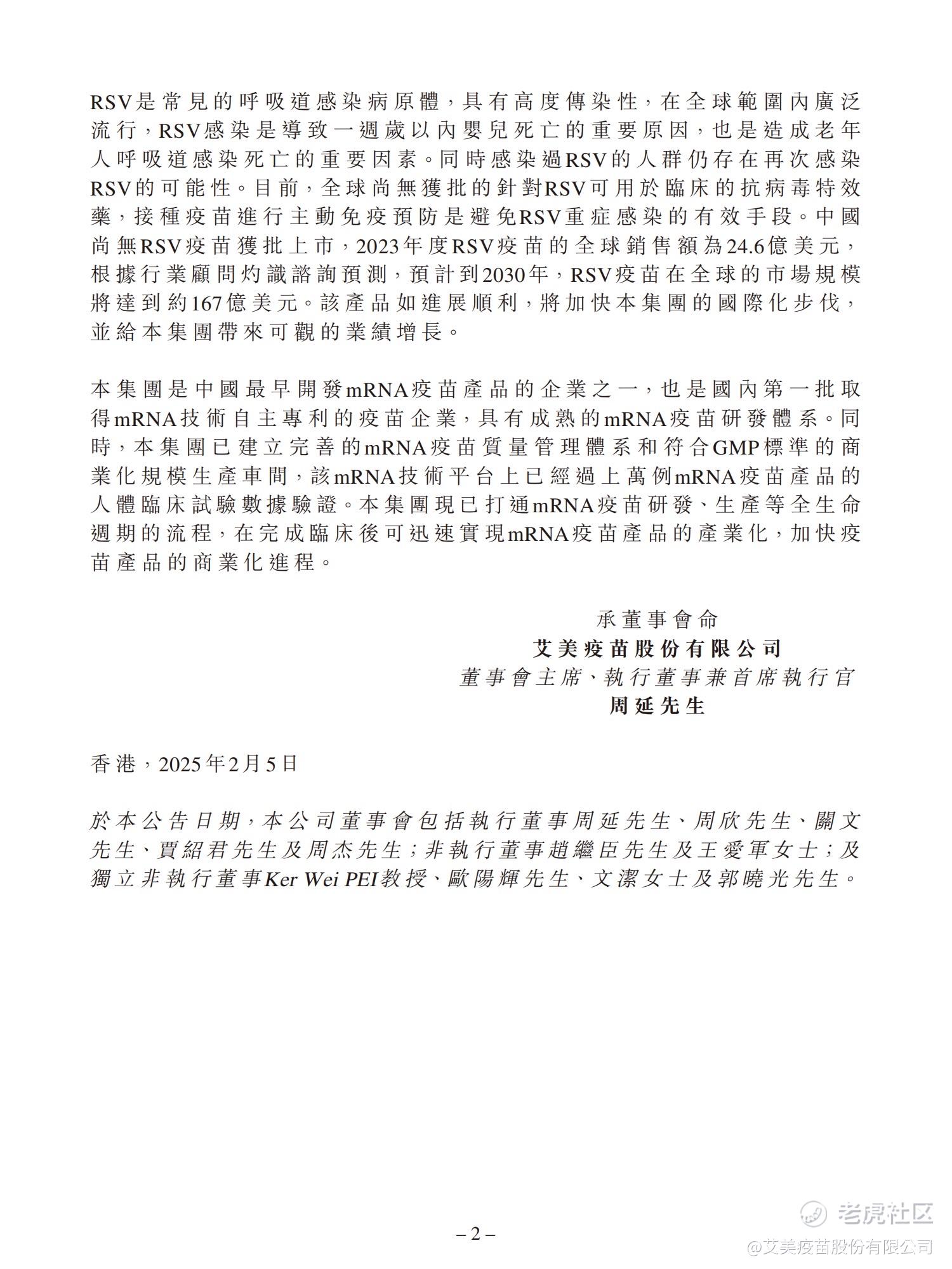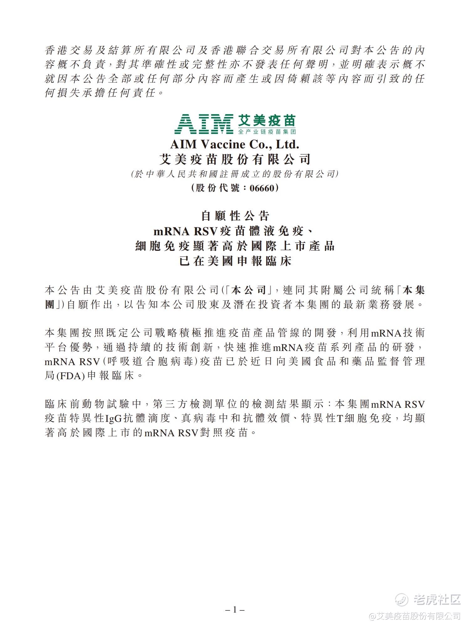 自愿性公告 - mRNA RSV疫苗体液免疫、细胞免疫显著高于国际上市产品已在美国申报临床